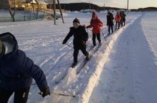 Как здорово. что зима!!! И можно покататься на лыжах! Вот и дети младших классов встали на лыжи! Растет достойная спортивная смена!