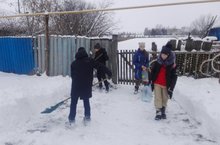 Юнармия сафындагы укучылар Мөнирә Фәндис кызы җитәкчелегендә ялгыз яшәүче Мәймүнә әбигә ярдәм итәргә килделәр. Кызлар су алып кайткан арада егетләр ишек алдын, капка төбен кардан чистартып куйдылар. Укучыларны әби зур рәхмәтләр әйтеп озатты.