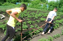 Төшкә кадәр, укучылар ике сәгать, мәктәп яны тәҗрибә участогында да эшләп ала. Пешекче апалары үзләрен тәмле ашлар белән сыйлый.