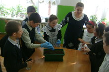 Район күләмендә үткәрелә торган проектта катнашып өченче һәм дүртенче сыйныф укучылары Хабибуллина Рәмилә Равиловна белән чәчәкләр чәчтеләр.