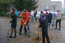 7 нче һәм 8 сыйныф укучылары Мөхәмәдиева Мөнирә Фәндис кызы җитәкчелегендә мәктәп территориясен яфраклардан чистартылар.