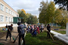 Өлкән сыйныф укучылары стадионда агач утыртсалар, башлангыч сыйныф укытучылары һәм укучылары мәктәп территориясен һәм алгы якны сап-сары матур яфраклардан арындырдылар.