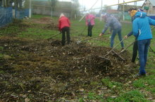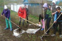 Мәктәп территориясен чистартып бетереп,иске мәктәп янындагы яфракларны ,чүп-чарларны җыйдылар.