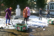Укучылар мәктәп территориясендә боз ваттылар,булган карларны чәчтеләр,чүп җыйдылар.