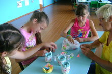 Түгәрәк эшләре мәктәптә җәйге каникул вакытында да туктап тормый. Бүген "Кояшкай" мәктәп яны лагеренда ял итүче балалар "Оста куллар" түгәрәге җитәкчесе Нәбиуллина З.Ш. җитәкчелегендә кәгазьдән төрле төстәге чәчәк вазалары ясадылар. 15.06.2015