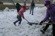 Бу шимбә өмәсендә укучылар мәктәп территориясендә эреп бетә алмаган карларны тараттылар.