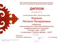 Мәктәбебезнең физика һәм математика укытучысы Мурзина Мөнзилә Мөхәрәм кызы "Ел укытучысы 2015" бәйгесенең "Физика укытучысы - 2015" номинациясендә җиңүчесе дип табылды. Муниципаль конкурс нәтиҗәләре нигезендә Мөнзилә Мөхәрәмовна район данын яклаячак. Уңышлар сезгә! Афәрин!