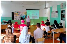 Сегодня учащиеся школы в дворце культуры "Энергетик" посмотрели спектакль "Родная речь / Татар теле - сәхнә теле" театра им. К.Тинчурина. Урок-спектакль учит детей правильному произношению и грамотному использованию татарского языка. Спектакль, в котором говорится о необходимости избавления от заимствований и сленга при разговоре на татарском языке, направлен на пробуждение у детей и подростков любви к своему родному языку.