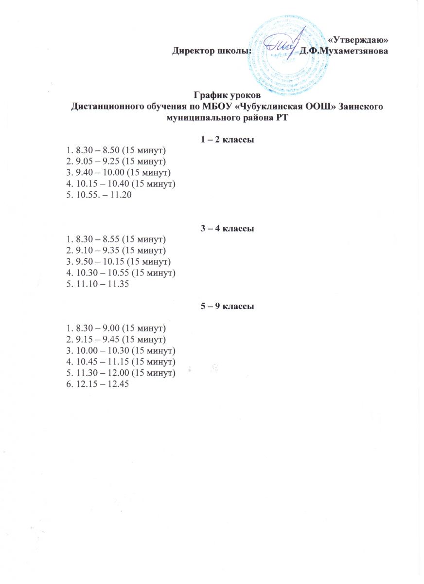 Расписание 1-9 классов (дистанционное обучение)