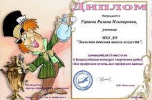 Поздравляем Гараеву Ралину, занявшую 2 место во ll Всероссийском конкурсе творческих работ «Все профессии нужны, все профессии важны» (педагог Баширова Э.И.). Молодцы! Желаем дальнейших успехов.