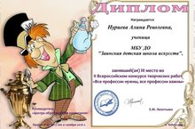 Поздравляем Нуриеву Алину, занявшую 3 место во ll Всероссийском конкурсе творческих работ «Все профессии нужны, все профессии важны» (педагог Дмитриева Е.Н.). Молодцы! Желаем дальнейших успехов.