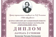Поздравляем Безносову Т.Е., педагога отделения музыкального искусства, ставшую лауреатом 2 степени Всероссийского дистанционного конкурса учебно-образовательных материалов «Образование-2016».