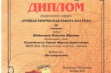 Поздравляем Шабакову Татьяну, занявшую 3 место в Общероссийском конкурсе «Лучшая творческая работа 2015 года». Видеоролик «Мое творчество» (педагог Горина М.А.). Молодцы! Желаем дальнейших успехов.
