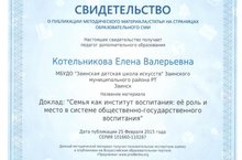 Доклад: «Семья как институт воспитания: её роль и место в системе общественного - государственного воспитания», автор Котельникова Е.В., опубликован на Всероссийском образовательном портале «Продлёнка».