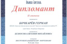 Поздравляем Бочкарева Германа, дипломанта II степени Международного конкурса «Планета Талантов»-«Зимняя карусель» (педагог Безносова Е.М.). Молодцы! Желаем дальнейших успехов!