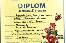 Поздравляем Образцовый детский хореографический коллектив «Каприз» и руководителя Маркелову Розу Альбертовну занявших II место (младшая и средняя группа) в XIV Открытом Республиканском телевизионном молодежном фестивале эстрадного искусства «Созвездие-Йолдызлык-2014». Зажигательные танцы младшей группы «В роще калина» и «Если б обувь могла говорить» были встречены бурными аплодисментами, а танцы средней группы «Родной край» и «Хлопчики» вызвали восхищение своим непревзойденным искусством.