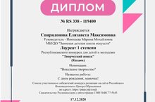 Поздравляем Спиридонову Е., учащуюся отделения музыкального искусства, ставшую Лауреатом I степени Республиканского конкурса для детей и молодежи «Творческий поиск» г. Казань (ПДО Инюшева М.М.)