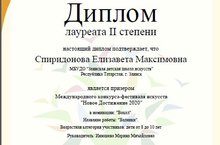 1.Инюшева М.М. – Сертификат куратора, 2.Спиридонова Елизавета – Диплом Лауреата 2 степени.