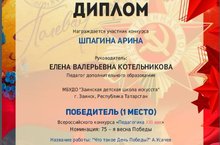 2. Шпагина Арина – диплом победителя (1место)