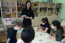 В рамках плана мероприятий в период осенних школьных каникул 5 ноября 2019 года педагог отделения изобразительного искусства Степанова А.Н. подготовила и провела мастер класс «Декорирование магнита жемчугом».