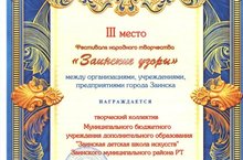 Поздравляем коллектив школы искусств занявших ІІІ место в Фестивале народного творчества «Заинские узоры» между организациями, учреждениями, предприятиями города Заинска.