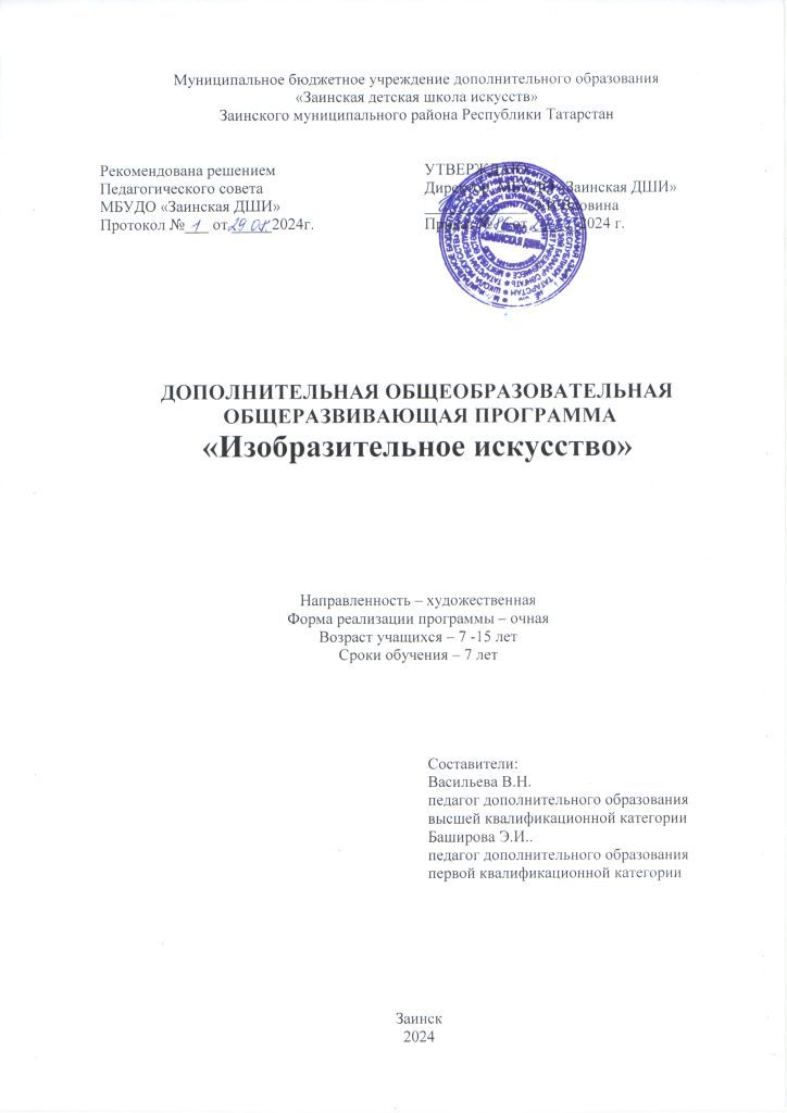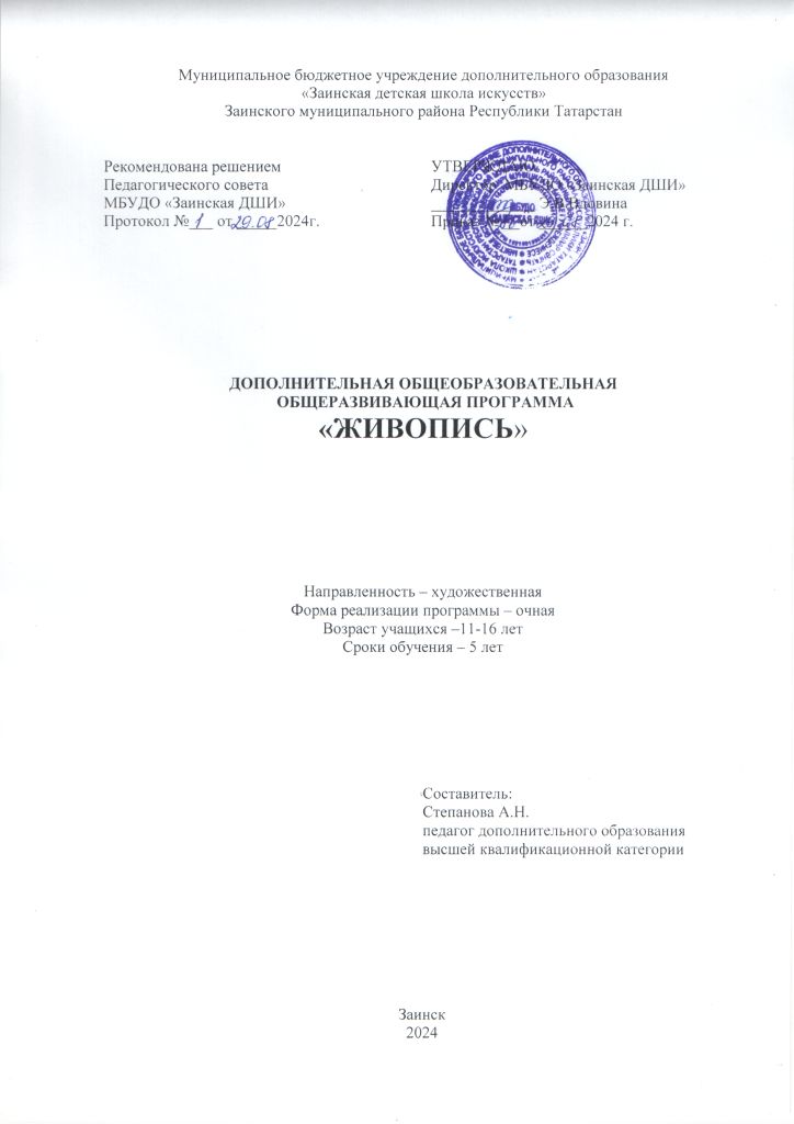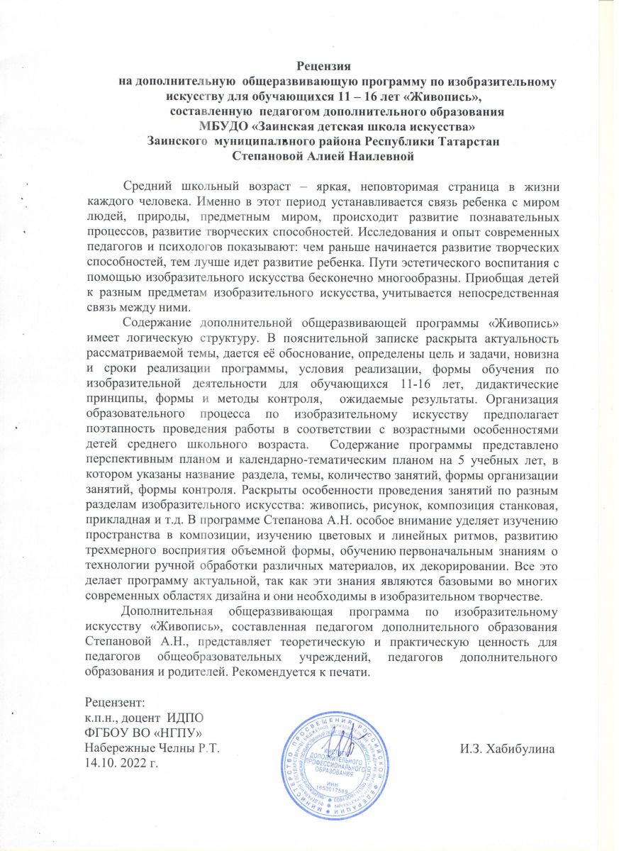 Рецензия на дополнительную общеразвивающую программу по изобразительному искусству для обучающихся 11-16 лет «Живопись».