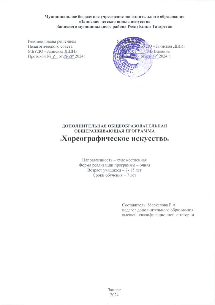 Муниципальное бюджетное учреждение дополнительного образования «Заинская детская школа искусств" Заинского муниципального района Республики Татарстан