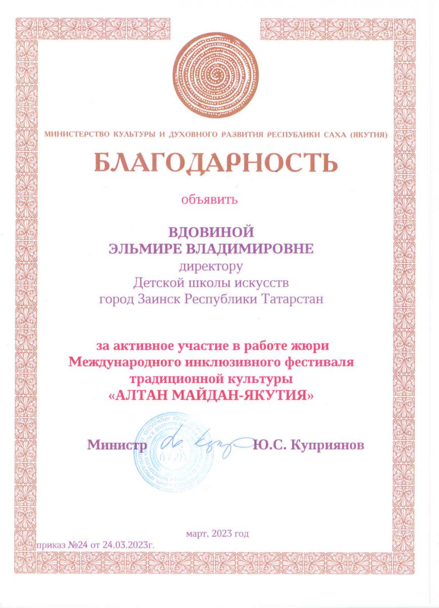 Приказ № 231/1 от 10.03.2023г. «Об итогах муниципального этапа Национального фестиваля детского художественного творчества «Без бергэ»