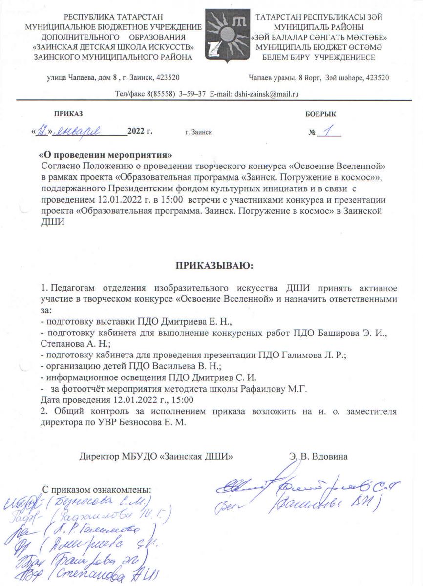 Приказ №1 от 12.01.2022 г. «О проведении мероприятия»