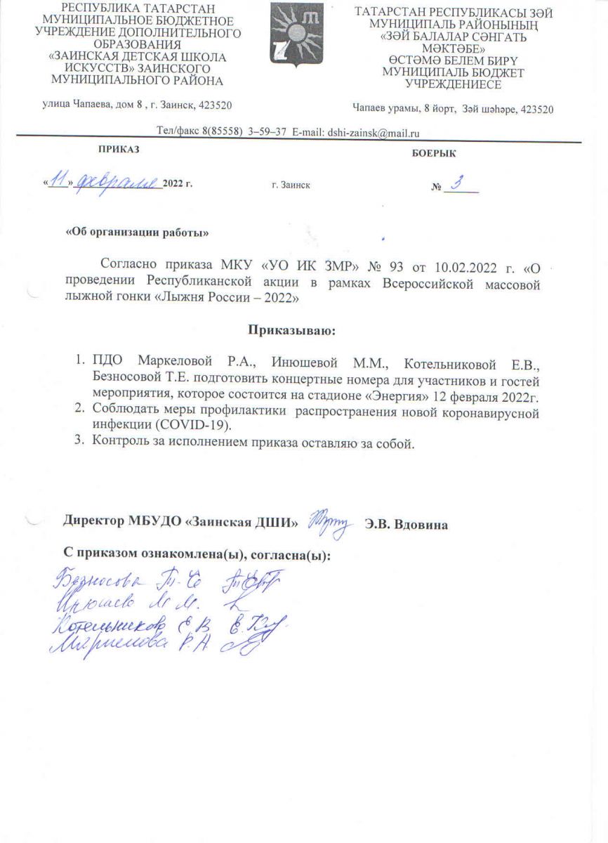Приказ №3 от 13.02.2022 г. «Об организации работы»