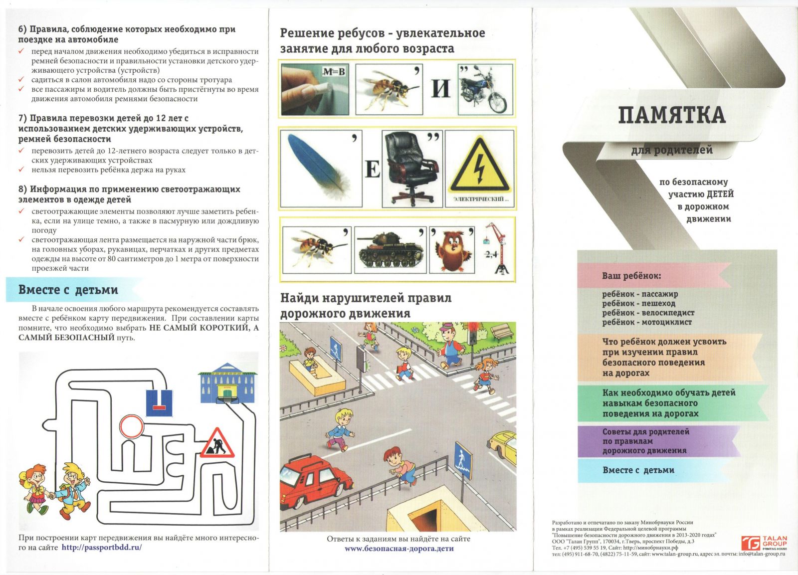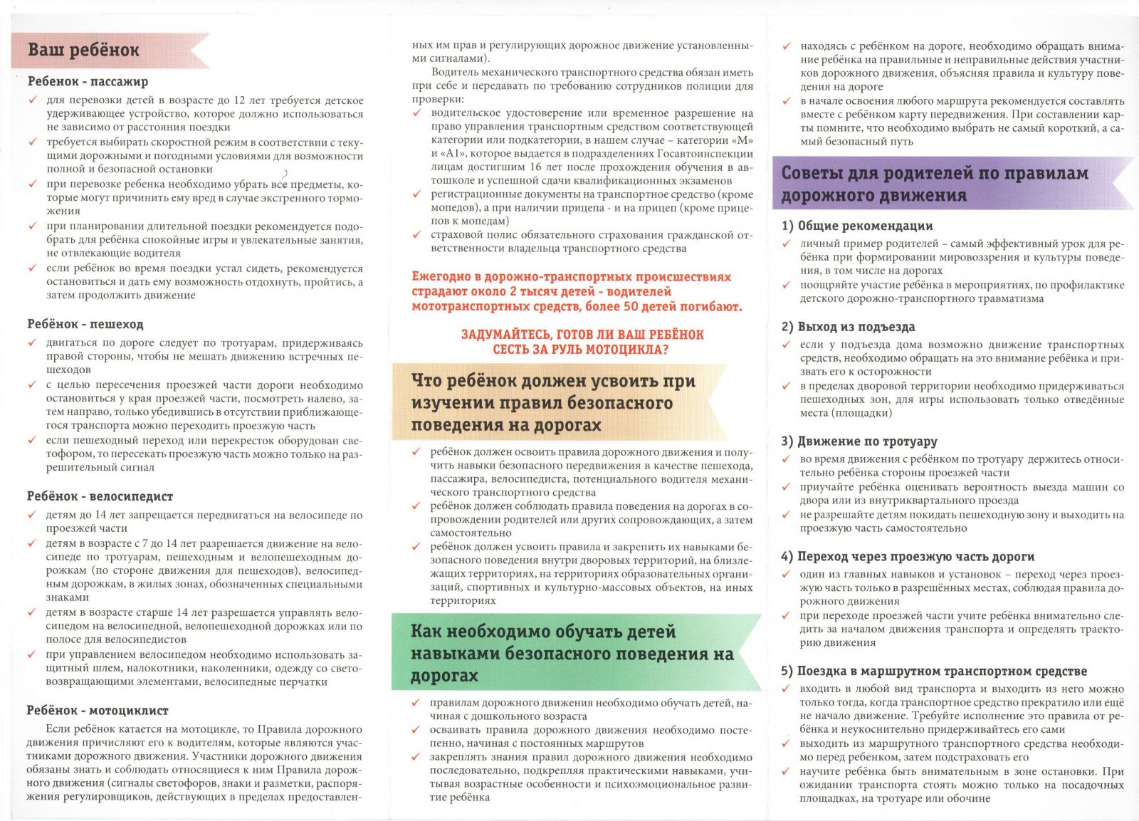 Памятка для родителей по безопасному участию детей в дорожном движении. Лист 1. Лист 2.