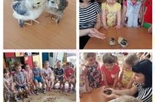 СЕГОДНЯ ВОСПИТАТЕЛЬ МИНЕГУЛОВА Л.Ш. ПРОВЕЛА ИНТЕГРИРОВАННОЕ ЗАНЯТИЕ С ДЕТЬМИ ВТОРОЙ МЛАДШЕЙ ГРУППЫ. ВОСПИТАТЕЛЬ ПРОВЕЛА С ДЕТЬМИ БЕСЕДУ О ПТИЧЬЕМ ДВОРЕ, КТО НА НЕМ ЖИВЕТ, ЧЕМ ПИТАЮТСЯ. УЗНАЛИ КАК ЗОВУТ ДЕТОК КУРОЧЕК, ГУСЕЙ, ИНДЮКОВ. ВСПОМНИЛИ СКАЗКУ О КУРОЧКЕ РЯБЕ. СЮРПРИЗОМ ДЛЯ РЕБЯТ БЫЛИ НАСТОЯЩИЕ ЦЫПЛЯТА, КОТОРЫХ ПРИНЕСЛА МАМА ОДНОЙ ИЗ ВОСПИТАННИЦ ГРУППЫ. МАЛЫШИ С ВОСХИЩЕНИЕМ И ИНТЕРЕСОМ ПОНАБЛЮДАЛИ ЗА ЦЫПЛЯТАМИ. В КОНЦЕ ЗАНЯТИЯ РЕБЯТА ВЫПОЛНИЛИ АППЛИКАЦИЮ "ЦЫПЛЯТА НА ЛУГУ".
