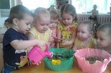 КАЖДЫЙ ГОД ВОСПИТАТЕЛИ СОВМЕСТНО С ДЕТЬМИ У СЕБЯ В ГРУППАХ ВЫРАЩИВАЮТ РАССАДУ ЦВЕТОВ ДЛЯ ОФОРМЛЕНИЯ ЛЕТНИХ КЛУМБ. НЕСМОТРЯ НА ТО, ЧТО В ЯСЕЛЬНОЙ ГРУППЕ ДЕТИ СОВСЕМ ЕЩЕ МАЛЕНЬКИЕ, ОНИ ПРОЯВЛЯЮТ БОЛЬШОЙ ИНТЕРЕС К СОВМЕСТНОМУ ТРУДУ С ВЗРОСЛЫМ, ЛЮБОЗНАТЕЛЬНОСТЬ. ВОСПИТАТЕЛИ ТАКИМ ОБРАЗОМ ПОДДЕРЖИВАЮТ ИНТЕРЕС ДЕТЕЙ К ОКРУЖАЮЩЕМУ МИРУ.
