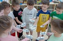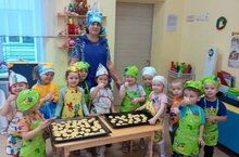 Ребята подготовительной группы показали малышам сказку "Репка". Заранее изготовили тренажёры для дыхательной гимнастики своими руками, подарили их младшей группе и вместе поиграли.