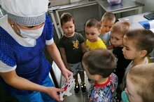 В этот день воспитанники средней группы познакомились с профессией повара, посетили пищеблок детского сада с целью расширения знаний о труде, а также воспитания положительного отношения к труду, чувства уважения к сотрудникам детского сада. Повар Гульназ Равилевна рассказала и показала детям, какие кухонные предметы и посуда используется для приготовления пищи. Ребята получили много информации.