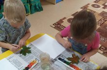 СЕГОДНЯ РАНИЯ ВАХИТОВНА, ВОСПИТАТЕЛЬ СТАРШЕЙ ГРУППЫ, ПРОВЕЛА С ДЕТЬМИ ЗАНЯТИЕ ПО РИСОВАНИЮ "ОТПЕЧАТОК ЛИСТЬЯМИ" НЕТРАДИЦИОННЫМ СПОСОБОМ. ДЕТИ ЗАКРЕПИЛИ ЗНАНИЯ О НЕТРАДИЦИОННЫХ ВИДАХ ИЗОБРАЗИТЕЛЬНОЙ ТЕХНИКИ, ПОЗНАКОМИЛИСЬ С НОВЫМ ВИДОМ (ОТПЕЧАТОК ЛИСТОМ С ДЕРЕВА), РАБОТАЛИ РАЗНЫМИ МАТЕРИАЛАМИ И СПОСОБАМИ.