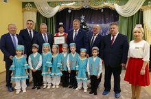 В ОБНОВЛЕННОМ ПОСЛЕ КАПИТАЛЬНОГО РЕМОНТА ДОШКОЛЬНОМ УЧРЕЖДЕНИИ МИНИСТР ОБОШЕЛ НЕСКОЛЬКО ГРУПП, ГДЕ ДЕТИ ИСПОЛНИЛИ ПЕСНИ И ЗАЧИТАЛИ СТИХИ НА ТАТАРСКОМ ЯЗЫКЕ. ОН ВРУЧИЛ ЗАВЕДУЮЩЕЙ ДЕТСКИМ САДОМ СЕРТИФИКАТ НА РАЗВИТИЕ ЭТОГО ЗАВЕДЕНИЯ.