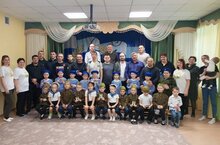 В нашем музыкальном зале прошло праздничное мероприятие, на котором дети соревновались, пели песни, танцевали и с выражением читали стихотворения. Танец мальчиков стал душевным подарком для гостей праздника. Дети и их папы проявили большую активность, подарили друг другу хорошее настроение, радость общения и улыбки, показали, какие они ловкие, быстрые и смелые.