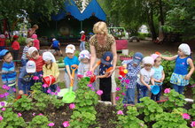 Труд детей в цветнике. 29.07.2016
