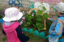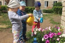 Экологическое воспитание в детском саду имеет очень большую роль в воспитании ребенка. С ранних лет мы прививаем любовь к природе, у себя на участке мы с ребятами младшей группы «А» посадили вот такие прекрасные петуньи, и каково было наше удивление, когда среди красивых цветов у нас появился неизвестный отросток. Каждую прогулку мы наблюдали за ним. Через две недели мы увидели, что появились желтенькие цветочки, а из них растут маленькие огурчики. Мы продолжаем наблюдать за ростом и цветением нашей очень красивой петуньи и, конечно же, за огурчиком соседом.