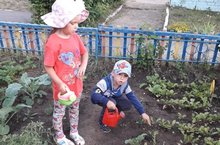 Малыши очень любят летние прогулки, ведь в это время года наблюдается много нового и интересного. Детсадовский огород самое интересное место на участке. Малыши радостно замечают, что у всех овощей разные по размеру листья, у свеклы маленькие - похожи на кораблики, листья помидор на звездочки. Самые большие листья у капусты - похожи на платок. Очень осторожно малыши осматривают свои грядки и замечают, что пора поливать, ведь овощи растут хорошо, если их поливают каждый день. Таким образом, в нашем саду, развивается интерес к природным объектам, расширяется активный и пассивный словарь малышей, воспитывается трудолюбие, бережное отношение к природе и наблюдательность за результатом своего труда.