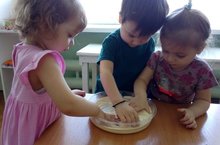 С каким восторгом любят малыши совершать различные игровые действия с манкой. Манка-это не только вкусная каша, но и материал для развития мелкой моторики. Манка успокаивающе действует на ребенка и способствует развитию воображения, улучшает эмоциональное состояние, развивает творческие способности. В процессе игры с манкой у детей совершенствуется зрительное и пространственное восприятие, речевые навыки, расширяется словарный запас, улучшается фонетический слух.