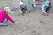 Лето, прекрасная пора! Даже дождь не повод для расстройства, а возможность пофантазировать.Чем и занялись ребята средней группы. Педагог Герасимова О.Н. подала ребятам идею для рисования на песке, нарисовав человечка. Дети заинтересовались и скоро на песке появилось много художественных "шедевров": замок, ракета, дома, цветы, человечки. А главное, ребята увлеченно и радостно провели время.