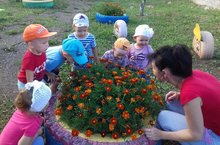 Еще ранней весной воспитатель Макурина Е. В. вместе с ребятами ясельной группы посадили семена бархатцев. Малыши с интересом наблюдали за процессом посадки семян в почву, а в дальнейшем и затем, как пробиваются первые зеленые росточки и появляются листочки. Уход за рассадой заключался в поливе и рыхлении земли. И вот в конце лета ребята с удовольствием любуются на результат своей работы. Каждый раз, выходя на прогулку, они здороваются со своими цветочками, вдыхают их аромат, ухаживают за ними. Очень важно прививать любовь к природе с самого раннего возраста.