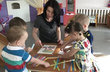 Бумага – один из самых простых и доступных материалов. Бумага для детского творчества легка в обработке. Любая работа с бумагой не только увлекательна, но и познавательна. Бумага дает ребенку проявить свою индивидуальность, воплотить замысел, ощутить радость творчества. С целью развития мелкой моторики рук, обучению чередованию полосок разных цветов в первой группе раннего возраста воспитатель Сиражиева В.И. приготовила для своих малышей новую дидактическую игру "Разноцветные полоски". Дети учились выкладывать полоски, разных цветов, а потом накладывали на полоски трафареты. И получались веселые, разноцветные животные.