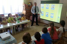 Инспектор Нафиков Ф.Ф. совместно с воспитанниками подготовительной группы «Светлячок» в игровой форме повторили Правила дорожного движения. Стражи порядка всегда с радостью приходят в детские сады, чтобы вновь и вновь рассказать малышам о безопасном поведении на дорогах. Их строгая форма, но добрый взгляд располагают к себе дошколят. И дети с интересом слушают наставления о правилах дорожного движения. В преддверии летних каникул инспектор по пропаганде Нафиков Ф.Ф. рассказал о правилах поведения на дороге. Под девизом «Правила дорожные - детям знать положено!» ребята совместно с инспектором в игровой форме вспомнили значение дорожных знаков, а также задали интересующие их вопросы. Полученные знания дошкольники закрепили в конкретных дорожных ситуациях. Особое внимание инспектор уделил Правилам дорожного движения для велосипедистов, напомнив детям, что движение велосипедистов в возрасте до 7 лет возможно только вместе с пешеходами (по тротуарам, пешеходным и велопешеходным дорожкам, пешеходным зонам) под присмотром родителей, а выезд на проезжую часть разрешен только с 14-летнего возраста. По окончании встречи дети подготовительной группы пообещали инспектору строго соблюдать Правила дорожного движения!