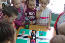 Сегодня воспитанники первой младшей группы со своим воспитателем Мартыновой Н.Р. помогали героям сказки «Волк и семеро козлят» спастись от злого, сердитого волка. Для этого ребятам понадобился конструктор - лего, чтобы построить заборчик. Малыши быстро принялись за работу, каждый выбрал себе детали определенного цвета. На вопрос воспитателя, какого цвета у тебя строительный материал, малыши уверенно называли основные цвета (красный, желтый, синий, зеленый) при этом ловко собирая детали конструктора. Заборчик получился прочный и красивый. Герои сказки поблагодарили малышей за заботу и подарили им воздушный шарик. Малыши были в восторге от подарка, но не забыли напомнить козлятам, впредь быть очень осторожными и внимательными. Так на сказочных примерах педагог развивает интерес у малышей к конструктивной деятельности.