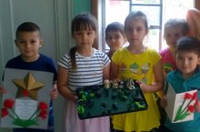 В преддверии этой знаменательной даты Дня Победы, в нашем детском саду проходил ряд мероприятий приуроченных к этому событию. Была организована выставка рисунков и поделок наших воспитанников «День Победы!». Ребята подготовительной группы «А» приняли активное участие и изготовили коллективный макет «На поле боя» из пластилина. Прежде чем начать работу дети рассматривали картины о Великой Отечественной Войне, слушали музыкальные произведения военных лет. Дети должны знать и ценить то, что сделали для нас наши дедушки и бабушки! Пусть небо будет мирным и светлым, а дети счастливы!