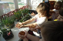 Это очень интересная идея огороды на окне. Вот и в начале марта, как и каждый год, мы с ребятами уже теперь подготовительной «А» группы решили вновь создать огород на окне. А чтобы он был необычным, поселили в нем сказочных героев. Предварительно с ребятами беседовали об овощах и фруктах, выясняли, чем "питаются" растения, что им нужно для роста. Выяснив все это, началась работа. Мы посадили лук, базилик, петунью, астры, гвоздику, бархатцы, щавель. Дети каждый день, приходя в группу, сразу же идут к окну и отмечают изменения, которые произошли в нашем огороде. И фиксируют их в паспортах растений. С удовольствием поливают растения и радуются каждому новому росточку.