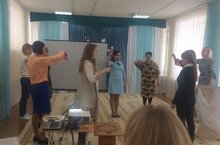 Сегодня педагоги нашего детского сада Мартынова Н. Р. и Бормотина И. М. приняли участие в региональном семинаре – практикуме для педагогов ДОУ «Здоровьесберегающие компоненты в организации образовательного процесса ДОУ» на базе детского сада «Василек». Воспитатели поделились своим опытом работы с коллегами из других детских садов. Мартынова Н. Р. в своей презентации «Игра - среда здоровьесбережения» рассказала о различных видах игр, а Бормотина И. М. провела мастер – класс с педагогами «Физкультминутки и динамические паузы». Семинар – практикум одна из форм, которая дает возможность педагогам поделиться своим опытом с другими.